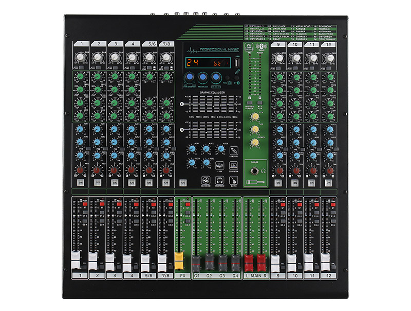 技術(shù)參數(shù) 12通道設(shè)計(jì),8路MIC單聲道+2路立體聲輸入 單聲通道100Hz低頻衰減開關(guān)(高通濾波) 每通道3段參量均衡,單聲道帶掃頻 4輔助編組輸出,2推子前折返,1衰減后輔助,1衰減后效果 3組...